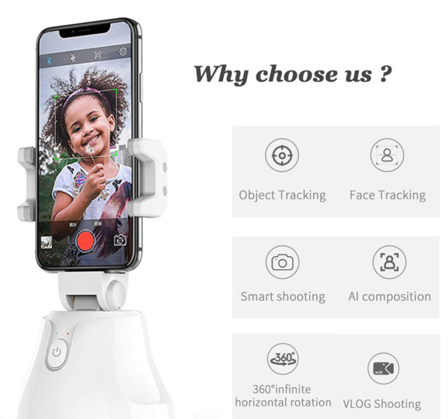 360° infinite horizontal rotation, Object tracking, Face tracking, Smart shooting, Portrait switch.
